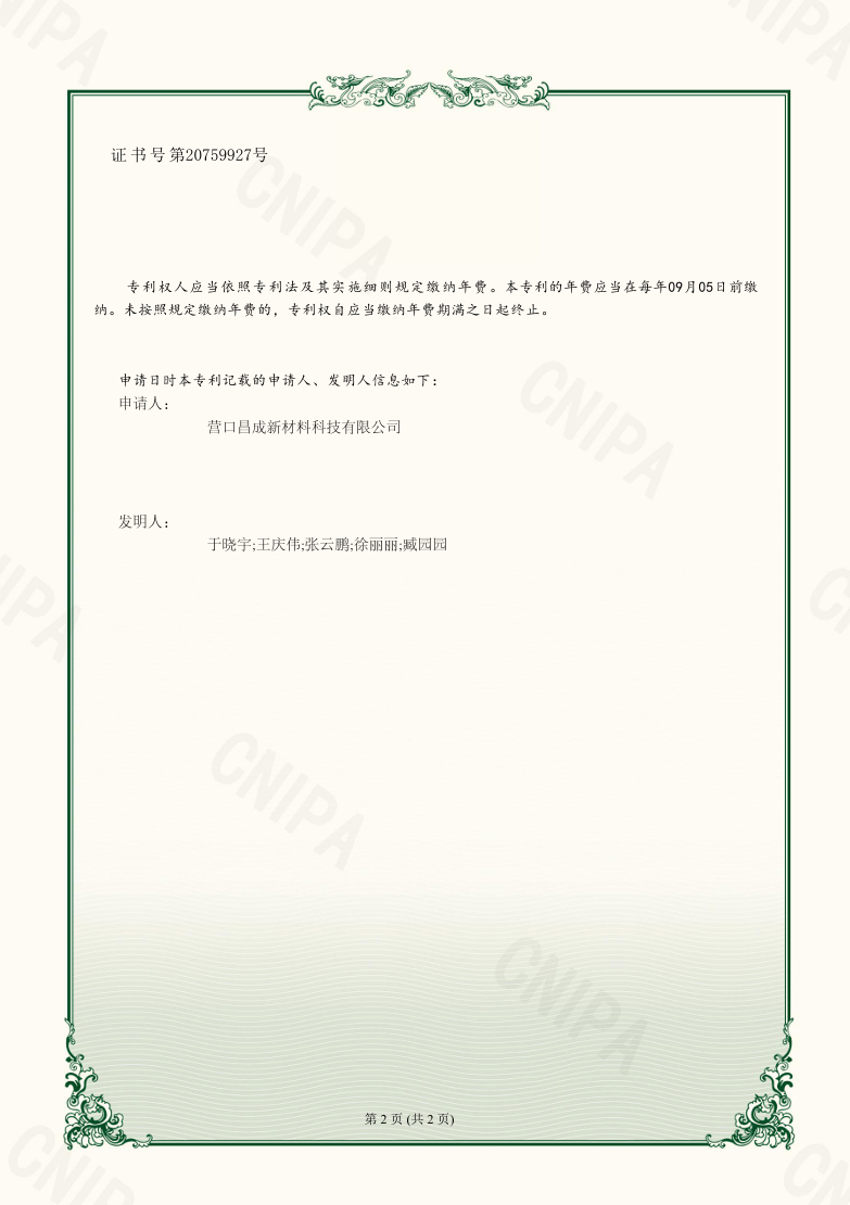 營口昌成新材料科技有限公司 版權(quán)所有(C)2021?網(wǎng)絡(luò)支持?中國化工網(wǎng)?全球化工網(wǎng)?生意寶?網(wǎng)盛建站?著作權(quán)聲明  遼ICP備2021005949號